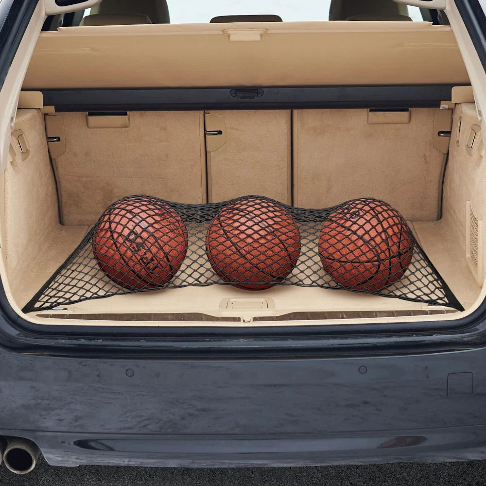 The elastic edges of the net adapt to different shapes and sizes, securely holding everything from grocery bags and boxes to sports gear. Its generous dimensions let you safeguard a larger area of your trunk, while the simple attachment system makes installation and removal quick and hassle-free. Crafted from durable materials, this cargo net is built to stand up to everyday use for years to come.